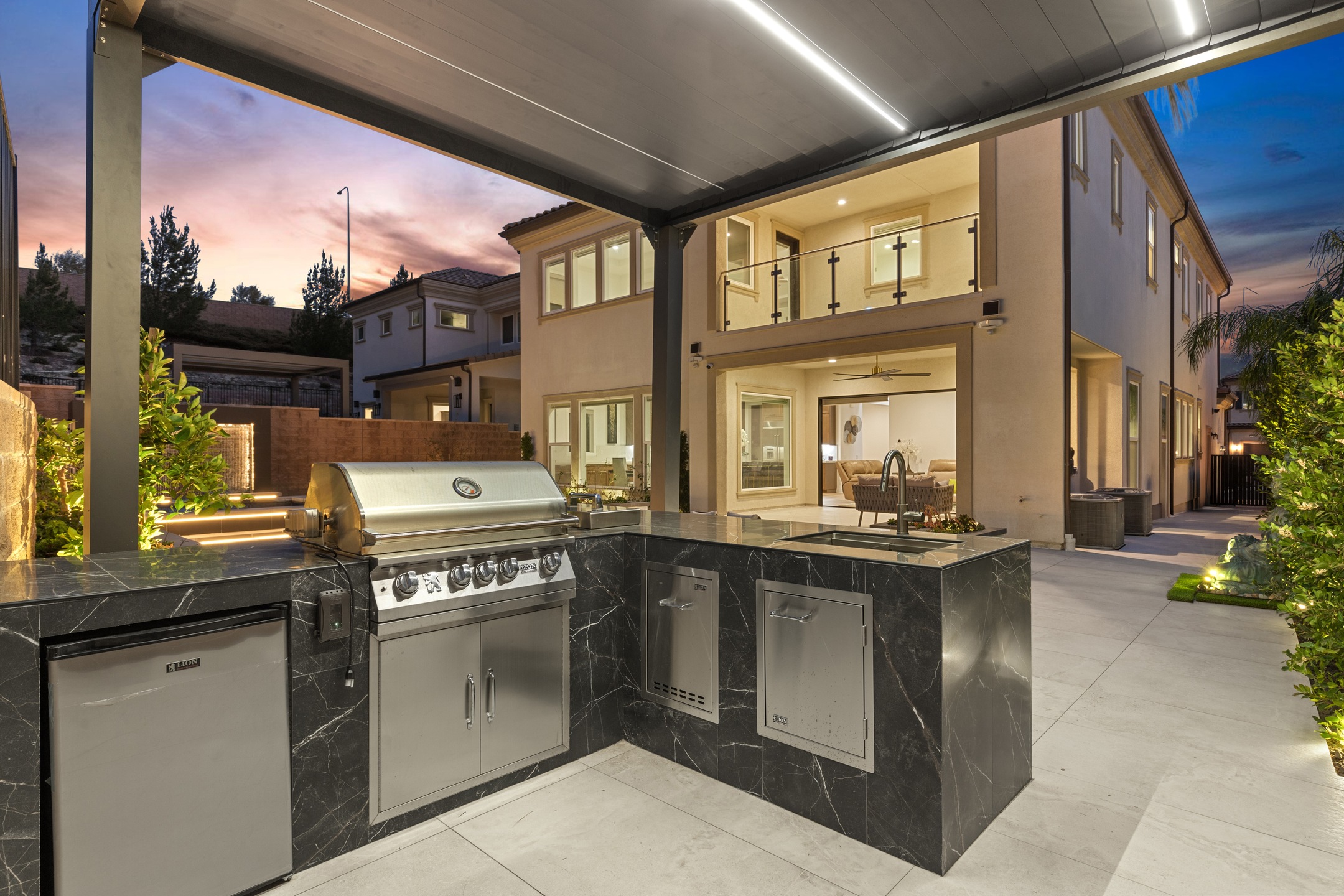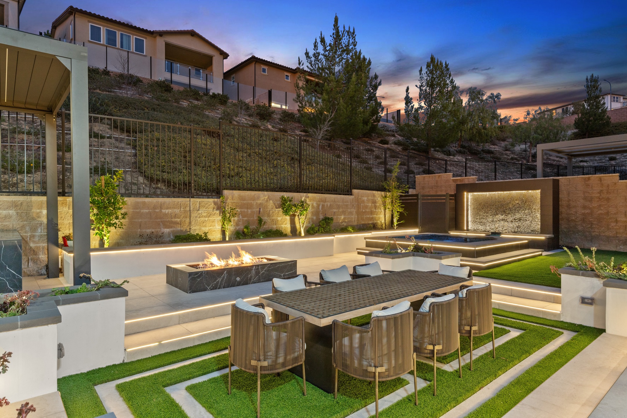 Incredible Estate style home at the GUARD GATED HILLCREST COMMUNITY situated in Porter Ranch. NO EXPENSE SPARED – built brand new from the ground up in 2021 with premium builder upgrades and finishes throughout. Amazing cul-de-sac location. ZEN INSIPRED backyard oasis. OWNED/PAID SOLAR. Interior: FIVE BEDROOMS - FIVE AND A HALF BATHS - PLUS A DOWNSTAIRS OFFICE/BONUS ROOM – AND AN UPSTAIRS DEN/LOFT. Approximately 4278 square feet of living space, on an 8,480 square foot lot. Open concept central floor plan that includes a chef’s kitchen with upgraded granite countertops, magnificent oversized center island, six burner stove, double oven, Jen Air refrigerator, custom cabinetry and a countertop extension that covers the entire wall – all flows beautifully to a family room, two dining areas and the exquisite outdoor grounds. Upgraded flooring throughout the entire first level. One full bedroom suite on the first floor along with a separate office/bonus room. Four additional bedrooms upstairs. Grand PRIMARY BEDROOM suite with sitting area, large walk in closet, spa like full bath, and huge private balcony. In total, FOUR bedroom suites, plus another guest bedroom and office. DIRECT ACCESS GARAGE with epoxy flooring, additional cabinets and safe rack for overhead storage. Exterior: Entertainers backyard includes a covered patio/California room with a ceiling fan, R10 rated non slip large porcelain tiles, lighted sunken dining area with planters, lighted retaining planter wall, built in BBQ station with kitchenette, smart custom aluminum pergola with louvers and led lighting. Highlights include a custom gas fire pit, automated heated SPA, separate water feature with floating steps and turf. Other thoughtful upgrades include automated blinds, a water softener system and a reverse osmosis water spout in the kitchen plus - secure, guard gated access to the development, award winning schools, a fantastic community park, and centrally located to the best shopping and entertainment in the area. From the designer driveway pavers and dual custom planters that greet you as you walk into this home, to the spectacular outdoor living space, this is the ONE! Don’t miss it!